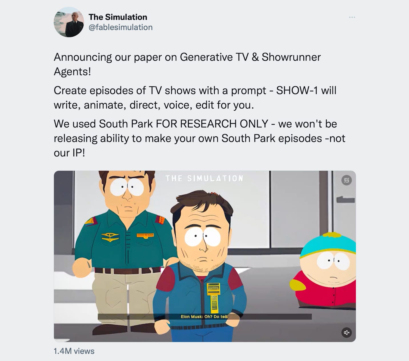 2/ Imagine a South Park episode entirely created by AI without a touch of a human. Pretty insane. Soon, turning books into exact movie adaptations might be reality.